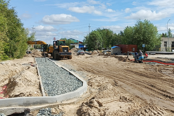На данный момент укладывают щебень в основание тротуаров, готовят участок под асфальтирование, завершают монтаж ливневой канализации. Все объездные схемы находятся на подъезде к улице Промышленной. Уже на следующей неделе на этом участке работы закончат.