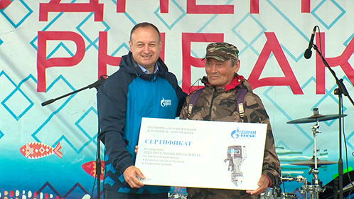 Он же вручил ключи от лодочного мотора ветерану рыбной отрасли – Сергею Харючи. Напомним, компания является давним партнером муниципалитета. Например, выделяются средства для приобретения призового фонда к «Слетам оленеводов» и «Дням рыбака», адресной помощи тундровикам и ветеранам.