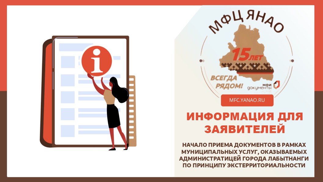 Информируем вас о начале приема и выдачи документов в рамках муниципальных услуг, оказываемых Администрацией города Лабытнанги по принципу экстерриториальности: