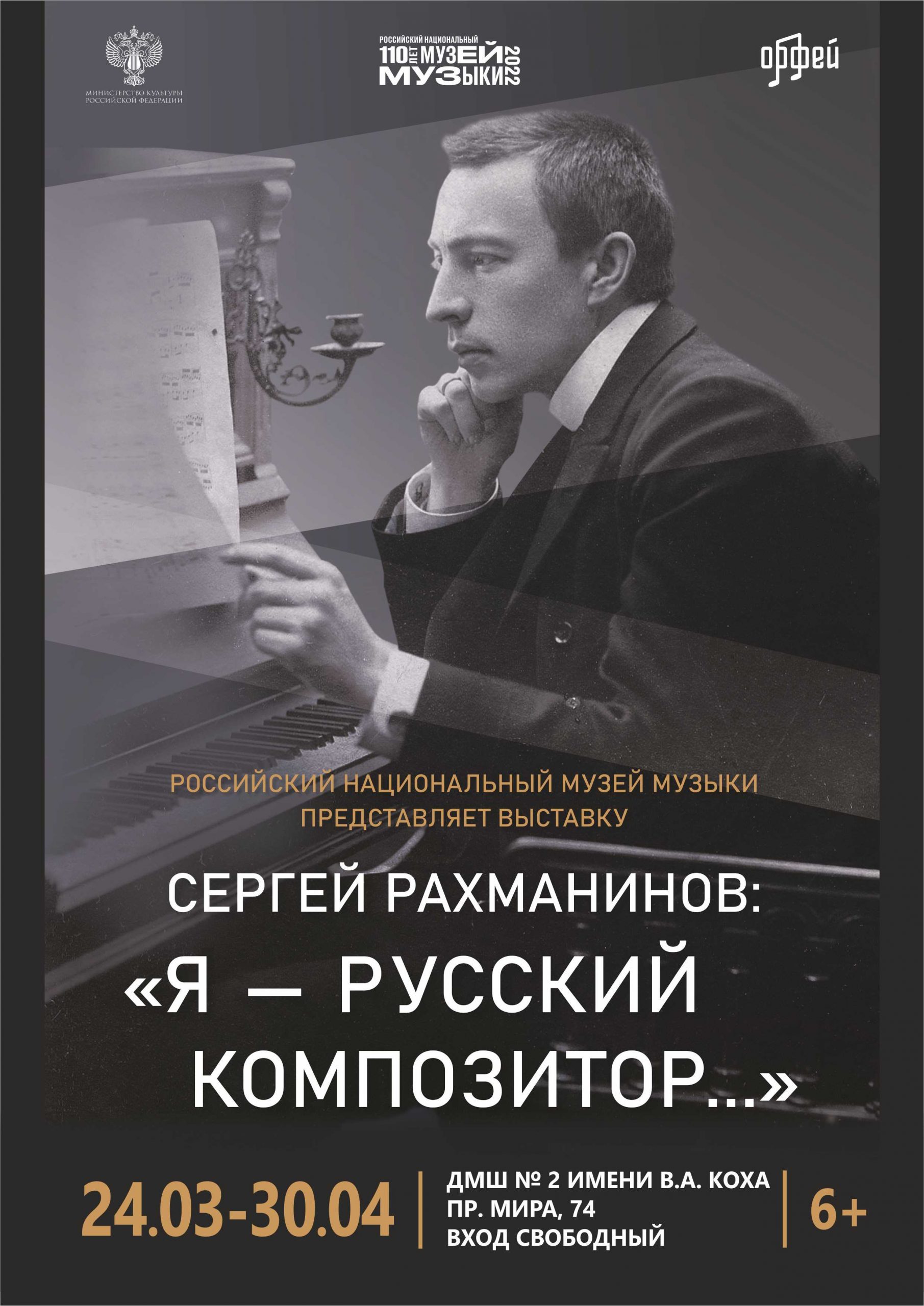 В преддверии празднования 150-летия со дня рождения композитора Сергея Рахманинова 24 марта в 14:00 часов в Детской музыкальной школе №2 имени В.А. Коха начинает работу передвижная выставка «Сергей Рахманинов: «Я – русский композитор», представленная Российским национальным музеем музыки.
