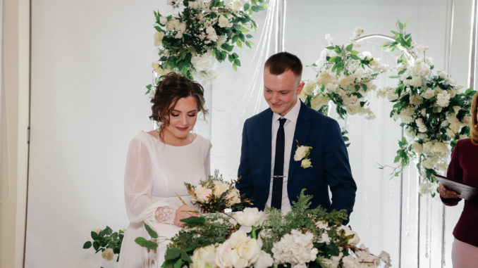 Сегодня среди молодоженов — молодая пара Валерий и Карина Браиловские.
