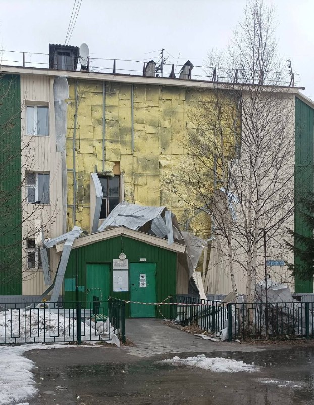 После сильного ветра с дома по адресу УТДС 20а сорвало сайдинг.