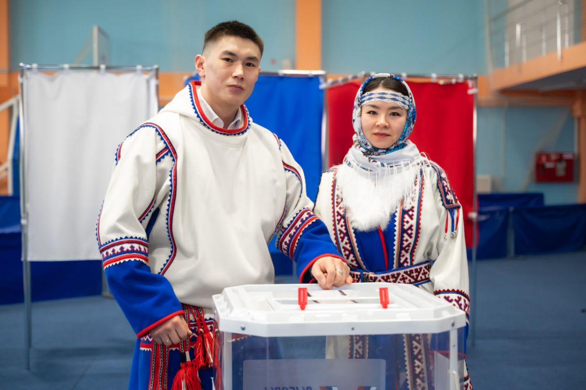 Коренные ненцы Александр и Илона стали первыми избирателями своего участка второго дня выборов Президента РФ Муж руководит военно-патриотическим клубом «Пламя», а жена работает в администрации Ямальского района.