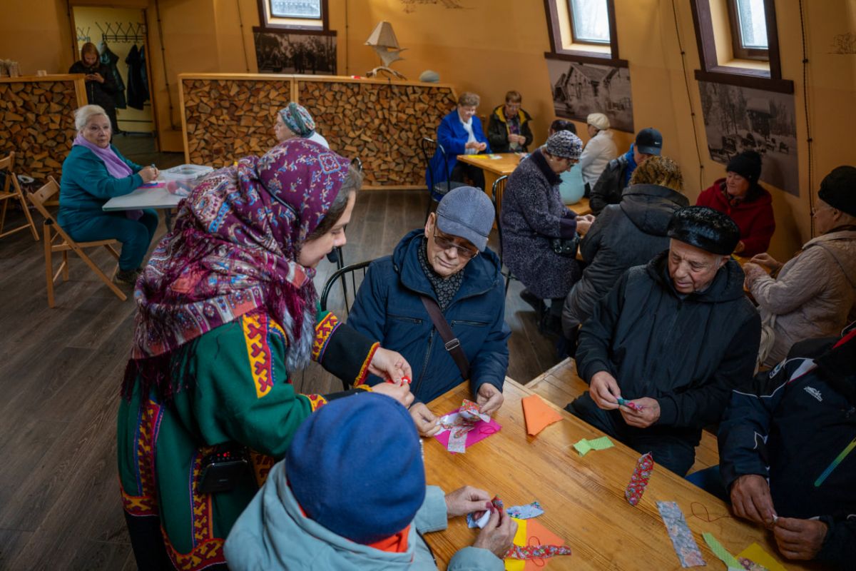Источник фото: Сайт Законодательного Собрания ЯНАО Для ветеранов из Лабытнанги, Харпа и Аксарки провели мероприятие, в процессе которого они погрузились в атмосферу национального быта и культуру коренных северян.