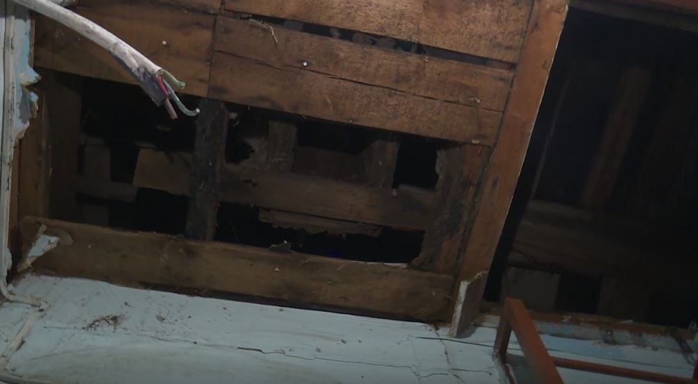 Алексей Думанов в своей квартире на втором этаже с женой и тремя детьми живет давно. Говорит, что в чердачном помещении электропроводов быть не должно. Они протянуты ниже потолка - вдоль стен.