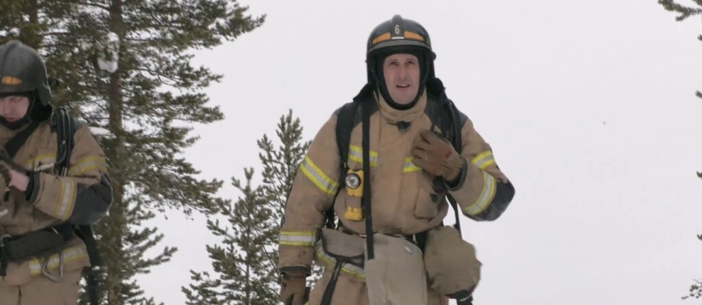 Спасатели выводят из охваченной огнем территории людей. Параллельно огнеборцы скрепляют пожарные рукава и прокладывают целые линии, чтобы скорее подать воду из озера и приступить к тушению. Врачи скорой оказывают помощь условно пострадавшим дачникам.