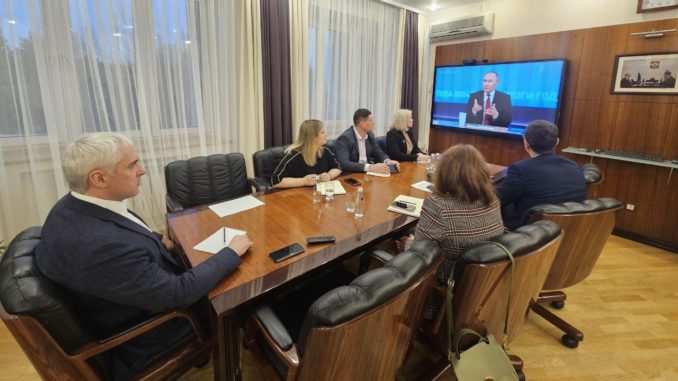 Фото: t.me/romanovblog Глава Ноябрьска Алексей Романов смотрел прямую линию с Президентом России Владимиром Путиным вместе с коллегами.