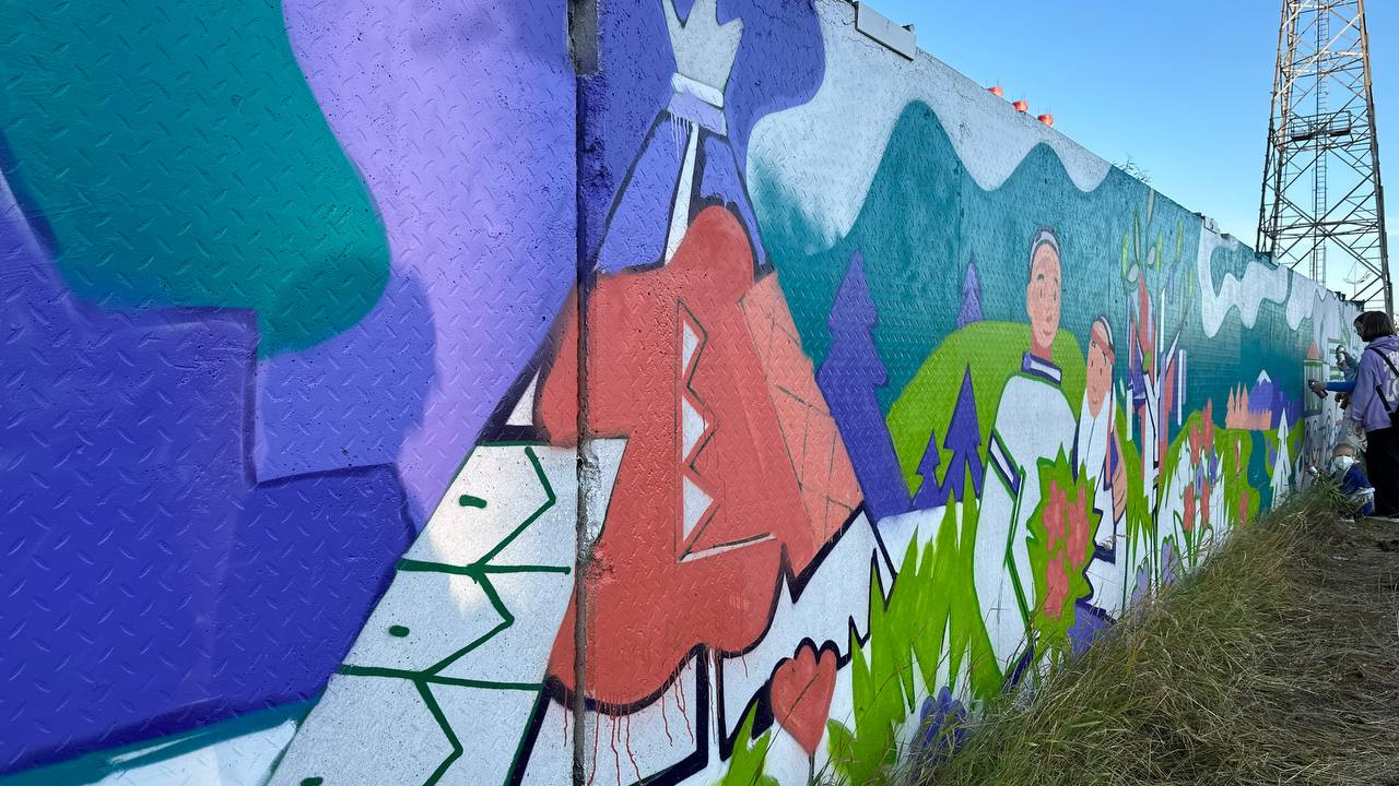 Новоуренгойцы создали мурал на серой стене