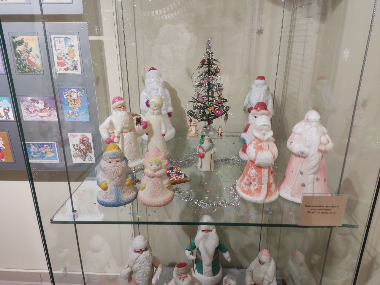 В экспозиции также представлены новогодние открытки, которые в советское время были неотъемлемой частью праздничных традиций. В отсутствие интернета люди начинали поздравлять друг друга с праздниками заранее, и получить яркую открытку с добрыми пожеланиями от друзей, живущих за тысячи километров, было особенно приятно.