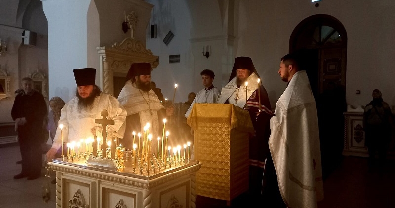 Накануне было совершено вечернее заупокойное богослужение с чтением 17-й кафизмы.