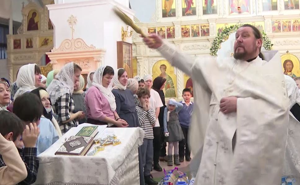 И вновь по храму апостолов Петра и Павла разливается праздничная молитва. Под песнопения церковного хора прихожане вспоминают евангельское событие, когда Иисус в сопровождении других уверовавших пришел на реку Иордан святой земли Палестины, где принял крещение от Иоана Крестителя.