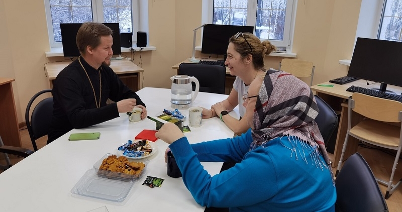 Днём 11 ноября в библиотеке Духовно-просветительского центра иерей Сергий Кузнецов провёл встречу с родителями детей с ограниченными возможностями здоровья. За чашкой чая священник и родители особенных детей говорили о важности молитвы в жизни человека. Священник рассказал о том, что такое молитва, дал советы, как себя побудить к молитве, когда совсем не хочется молиться. Время за тёплой беседой пролетело незаметно.