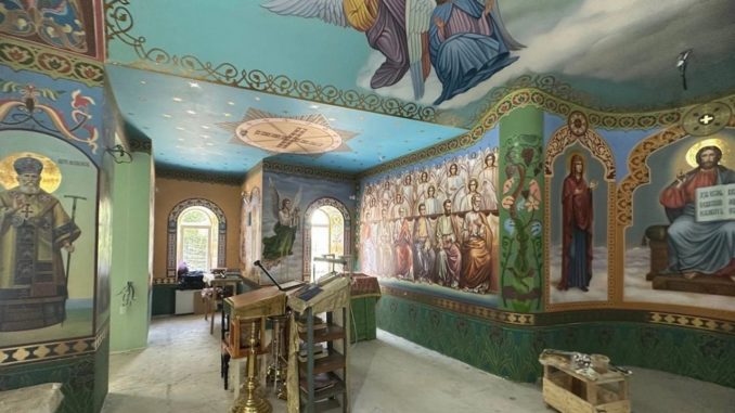 Художники завершают роспись стен и потолка. Все сюжеты соответствуют старым традициям Русской православной церкви и выполнены по предварительно согласованным эскизам. Строители приступили к монтажу церковного убранства, колоколов и куполов.
