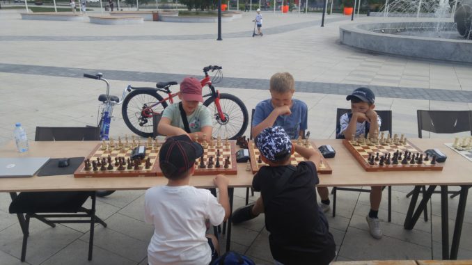 В субботний день почитатели древнеиндийской игры по традиции собрались у большого фонтана на улице Ленина, чтобы сыграть, как говорится, партейку-другую. Перед началом поединков тренер СШОР «Альтис» Ашот Мкртумян поздравил ребят с Международным днем шахмат, который во всем мире отмечается 20 июля.