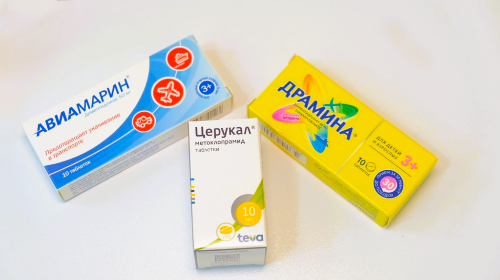 Помогают на время снять приступы тошноты и фармакологические средства. При их приеме необходимо учитывать, что таблетки от укачивания имеют ряд противопоказаний, поэтому лучше проконсультироваться с врачом.
