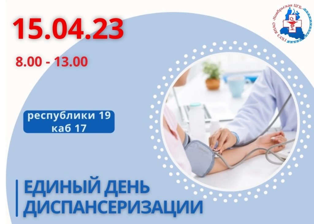 Центральная городская больница Ноябрьска 15 апреля приглашает горожан пройти диспансеризацию.