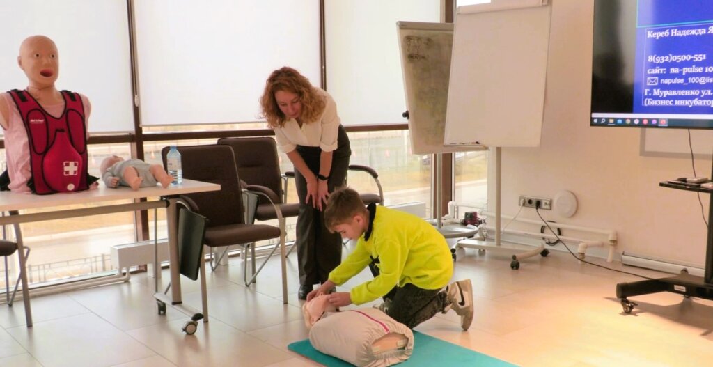 Мастер-класс по сердечно-лёгочной реанимации прошёл во всемирный день «Запусти сердце». Собравшиеся разбирают каждое свое действие. Что важно сделать в первые минуты до приезда скорой, как правильно выполнить реанимационные действия, и какова их продолжительность. Надежда объясняет настолько доступно, что поймёт даже ребенок.