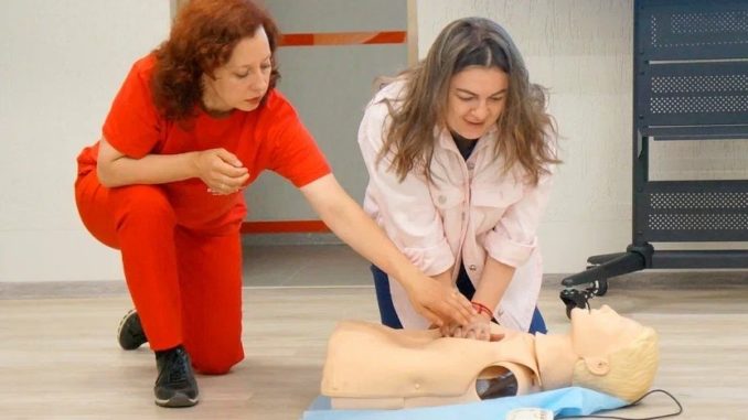Мастер-класс по оказанию первой помощи провела медицинский психолог Злата Аникиева. Она объяснила, какие действия необходимо предпринять, если человеку стало плохо. Каждый желающий смог отработать порядок действий на манекене.