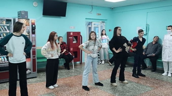 Воспитанники и волонтёры объединения “Быть добру” молодёжных клубов «Высокий полёт» и «Шанс» в отделении медицинской профилактики провели зарядку для сотрудников медучреждения и пациентов.