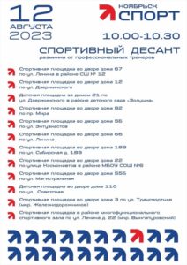 12 августа профессиональные тренеры будут работать на 12 дворовых площадках. Начало разминок в 10.00. Все адреса размещены в афише.