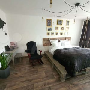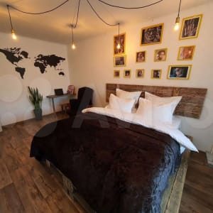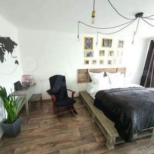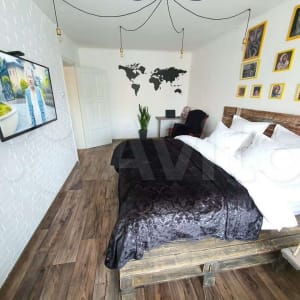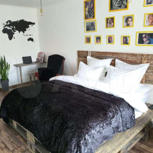 💎 Изюминка квартиры — большая, дизайнерская кровать на подиуме из т. н. поддонов (поддоны сделаны из массива дерева в нашей мастерской. Вся конструкция тщательно собрана и закреплена, нигде ничего не скрипит)