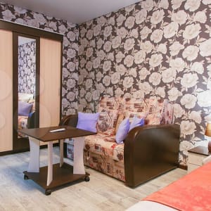✔ Красивая дизайнерская комната вмещает два раздельных спальных места: комфортную двуспальную кровать с ортопедическим матрасом и диван, образующий при необходимости второе удобное спальное место. Качественному сну и отдыху способствуют плотные светоизолирующие портьеры. Для досуга предусмотрены журнальный стол, кабельное TV и Wi-Fi. Вещи можно расположить в шкафу-купе с зеркальной створкой. Приятным дополнением послужат светильники на прикроватных тумбах и интерьерные аксессуары.