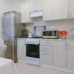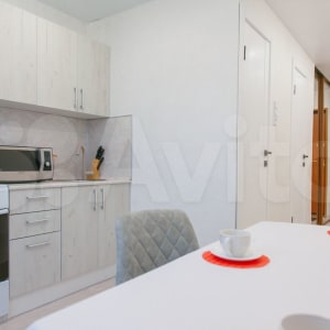 ✔ Кухня оснащена светлым гарнитуром и удобной обеденной зоной с комфортными стульями. Присутствует вся необходимая для длительного проживания бытовая техника и полный комплект посуды на четверых гостей, что обеспечит приготовление привычного меню по своему вкусу.