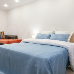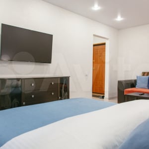 ✔ В комфортной комнате два безупречных раздельных двуспальных места. Мягкая кровать оснащена ортопедическим матрасом и создает оптимальные условия для полноценного сна. Раскладной диван служит максимально удобным спальным местом для отдыха после насыщенного рабочего дня. К кровати подобраны вечерние светильники для приятного чтения перед сном. В любое время гости могут пользоваться высокоскоростным Wi-Fi и кабельным телевидением. Вещи можно разместить в стильном комоде и зеркальном шкафу, расположенном в коридоре.