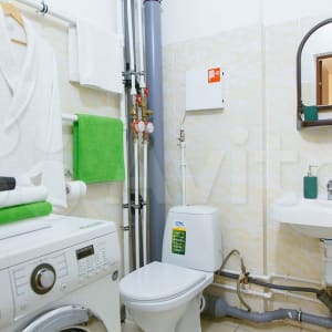 ✔ В санузле установлена белоснежная, новая сантехника. В распоряжении гостей ванна, стиральная машина-автомат и необходимые для полноценного личного ухода принадлежности.
