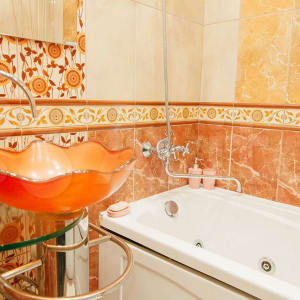 ✔ Санузел раздельный. Он оборудован оригинальной сантехникой. В наличии имеются все принадлежности для полноценного личного ухода гостей квартиры: от стиральной машины-автомат до фена.