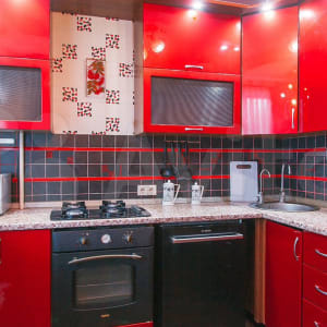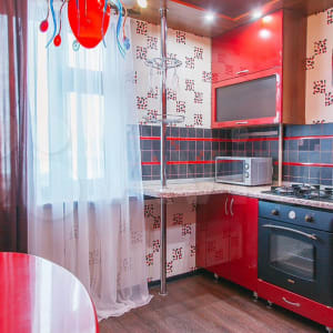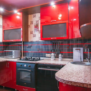 ✔ Яркая просторная кухня оснащена стильным гарнитуром с барной стойкой. В наличии вся необходимая бытовая техника и полный комплект разнообразной посуды на три персоны гостей, что поможет в приготовлении любого рациона на свой вкус. Насладиться трапезой и чаепитием можно за необычным столом.