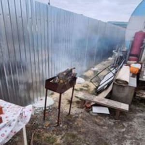 продам участок, на участке стоит бочка жилая с ремонтом и светом, ещё на участке баня(сгорела) коричневого цвета забор по периметру