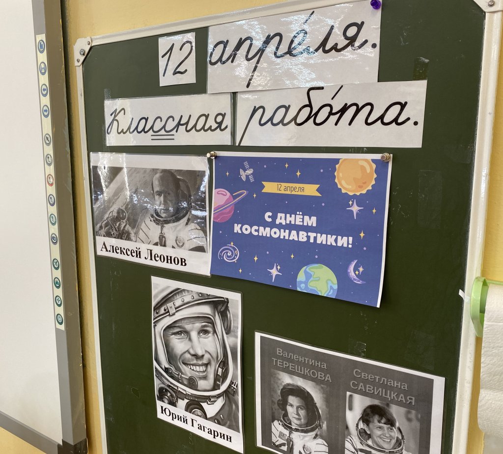 «Идея пришла в голову моей супруге. Так как супруга и дочка Милена жили в Калуге. Калуга у нас является колыбелью космонавтики. Они прям рьяно восприняли эту идею и сразу начали творить. Сначала на листке бумаги, а затем уже с остальными родителями внесли некие корректировки и вот появился такой стенд».